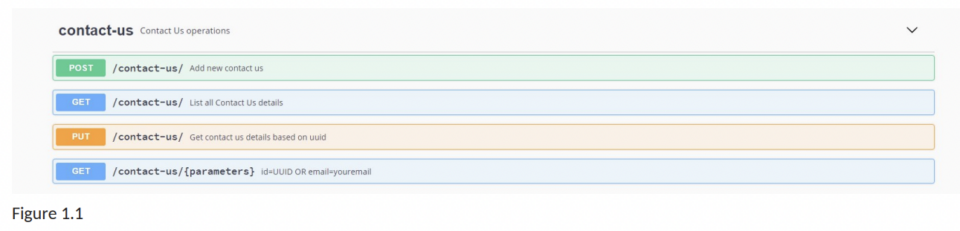 As shown in Figure 1.1, the endpoint (https://testdomain.com/contact-us) offers request methods like POST, GET, and PUT.
