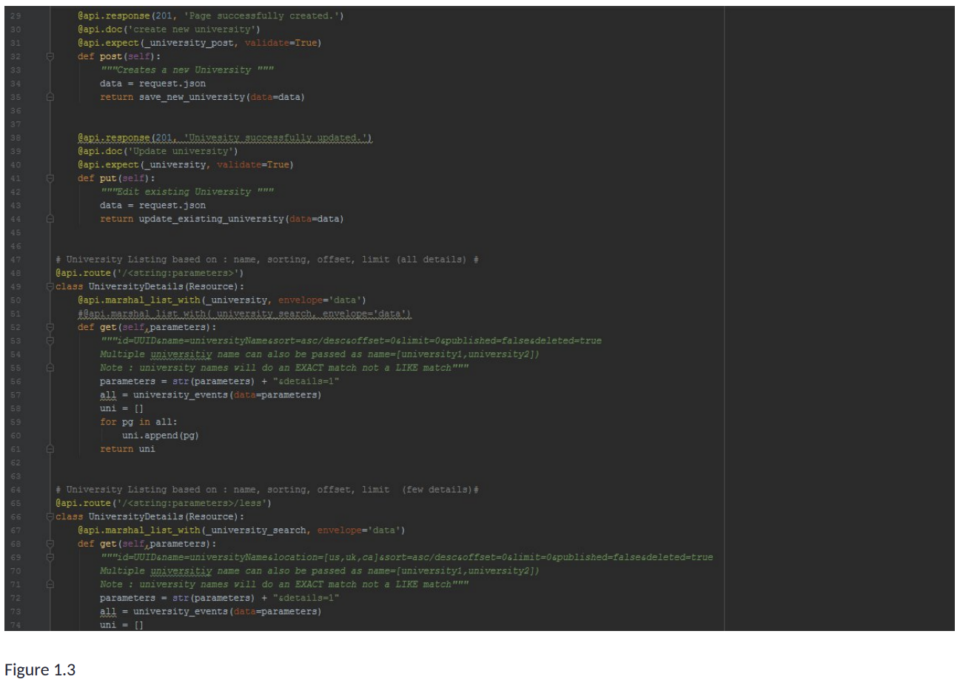As shown in Figure 1.3, even if your API retrieves all records from a database, only the fields defined in the marshal are included in the response. This keeps your API documentation with Swagger clean and consistent.