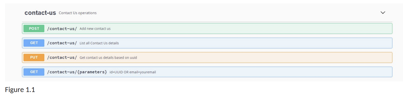 As shown in Figure 1.1, the endpoint (https://testdomain.com/contact-us) offers request methods like POST, GET, and PUT.
