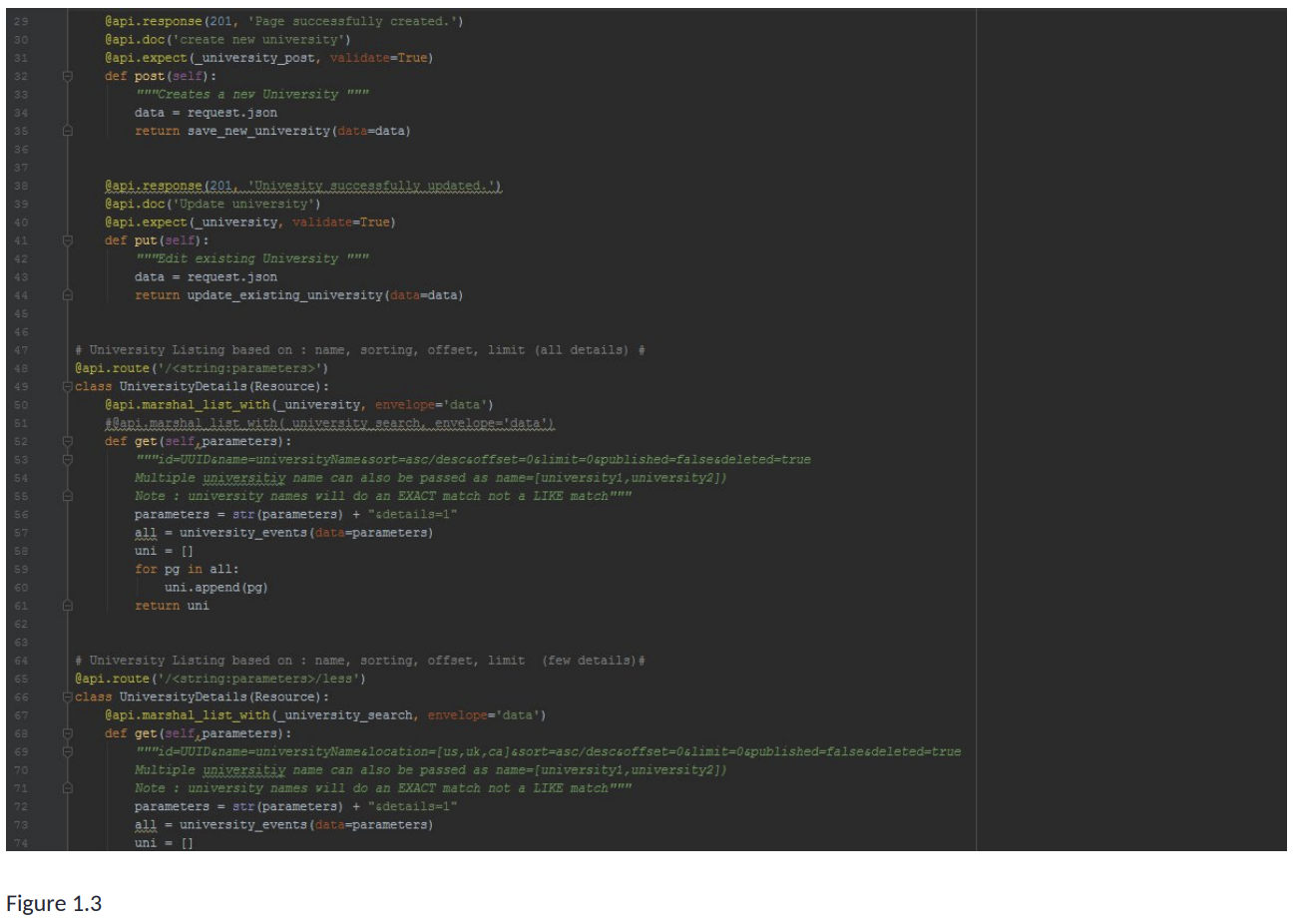 In Figure 1.2, the GET API for “university” expects different parameters. Swagger UI simplifies this by displaying input boxes where you can enter parameters directly. It also allows you to define which parameters are valid.